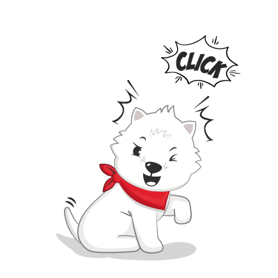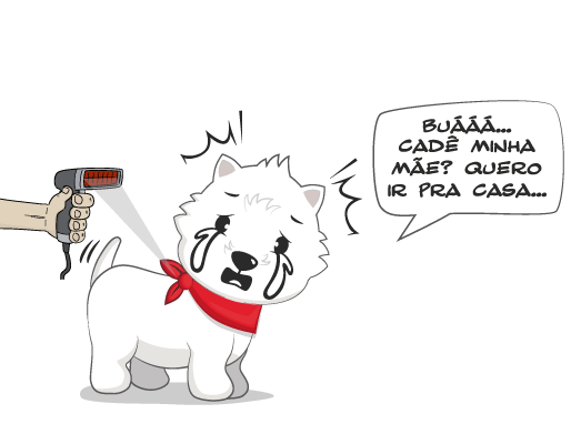 Quando crescemos e começamos a fazer bagunça, vamos para a “escolinha de filhotes”. Nossa aula é muito legal! Lá a gente aprende que, quando a gente faz uma coisa certa, tem um “click” e a gente ganha um petisco.